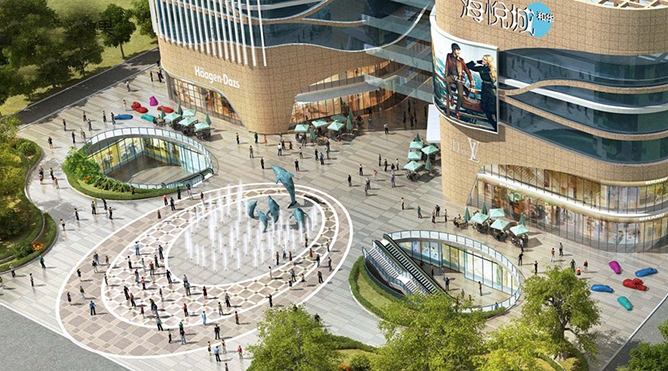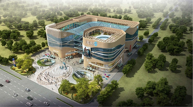 阜陽(yáng)•和華商場(chǎng)位于阜陽(yáng)市經(jīng)濟(jì)技術(shù)開發(fā)區(qū),建筑面積105188平方米,地上4層,地下2層。大樓及樓前廣場(chǎng)以海洋風(fēng)格為設(shè)計(jì)理念,清新自然。