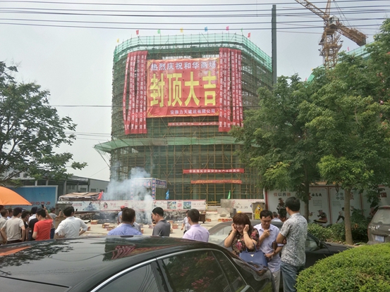 2017年6月26日,安徽力天建設(shè)有限公司承建的阜陽和華商場項目封頂大吉,公司領(lǐng)導(dǎo)前往參加,并召開2017年“安全生產(chǎn)月”安全宣傳教育會議,強(qiáng)調(diào)安全生產(chǎn)的重要性,要求現(xiàn)場的施工隊伍在以后的施工過程中把安全生產(chǎn)放在第一位。